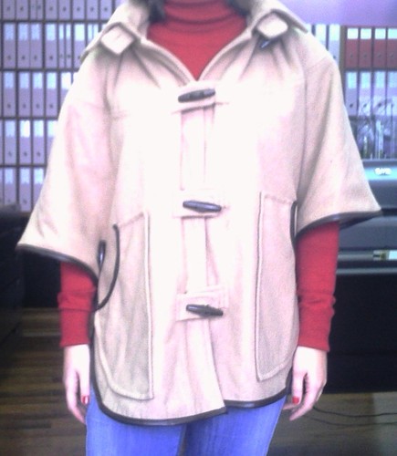 O ideal é usarem-na com skinny ou leggins de modo a balançar o volume da capa. Senão o mais certo é ficarmos a parecer uns chouriços!