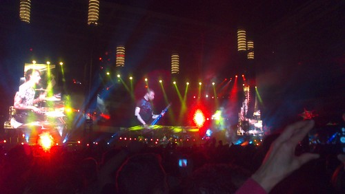 O estádio não encheu mas estava muito bem preenchido! Conseguimos ficar mais ou menos a meio do relvado e deu para ver bem, mais pelo ecran gigante do que para o palco já que tinha um homem das cavernas à frente que passou o concerto todo a filmar de telemóvel no ar! Um horror! Há pessoas que não têm noção!