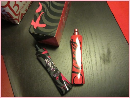 Lá dentro vinham o Capricho Sweet e Rock, dois perfumes da marca que podem ser usados separadamente ou que se misturados, dão origem a um terceiro aroma. Inovador, não?