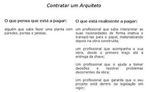 Por outro lado, o Arquiteto continua a ser uma figura um pouco abstrata para a maioria da população. Afinal, para que serve um Arquiteto? É só mais um a levar-nos dinheiro, sai-me mais barato ficar pelo empreiteiro ou por aquele desenhador que até trabalha numa câmara e me desenrasca todo o processo. Mas às vezes o barato sai caro e afinal de contas, regra geral, um projeto de arquitetura corresponde a uma percentagem de entre 5 a 7 % do custo total da obra. Para não me estar a alargar muito, deixo-vos este artigo que resume bem porque devem efetivamente contratar um Arquiteto.