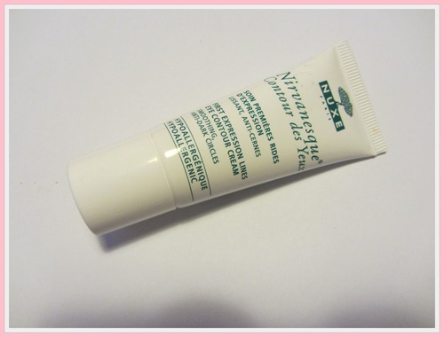 Aos anos que ouvia falar na Nuxe, uma marca muito conceituada de cosméticos de origem natural. No entanto, sempre achei os preços um pouco puxados para o meu bolso e fui adiando a compra. Mas há uns tempos deparei-me com uma campanha da marca no Clube Fashion e escolhi este creme - Nirvanesque Contorno de Olhos. Tenho vindo a usar desde então e so tenho coisas boas a apontar. Atua nas primeiras linhas e rugas de expressão, suaviza as olheiras, é logo absorvido e não me causa qualquer tipo de irritação nos olhos. E o melhor é que sinto a pele junto aos olhos hidratada ao longo do dia. Uma boa compra!