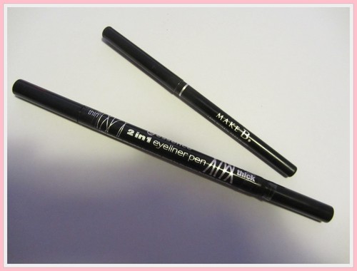 Embalada pela minha compra do lápis dos olhos, estava na Wells e vejo um eyeliner da Essence com dupla ponta - grossa e fina. Pareceu-me bem e lá o trouxe para casa. Bem, que desilusão. Parece uma caneta de feltro sem tinta. Ou tive azar e trouxe um que não estava em bom estado ou então nem sei. Felizmente o estrago na carteira foi pouco mas fico sempre chateada.