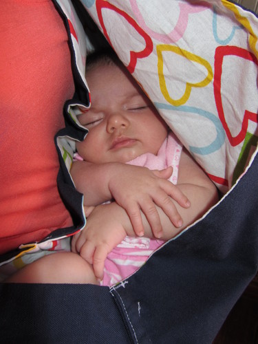 Uma coisa que dá muito jeito nisto da maternidade é um Sling. Serve para transportar o bébé e é bem mais prático que o trambolho do carrinho. Para além disso, ajuda a dar aquele aconchego extra aos bébés, que por estarem assim tão próximos da mamã, regressam aos tempos em que ainda estavam na barruiguita. E deixa a mãe de mãos livres para ir fazendo algumas coisas em casa. A Pinypon sempre que a colocava lá, adormecia toda consolada!